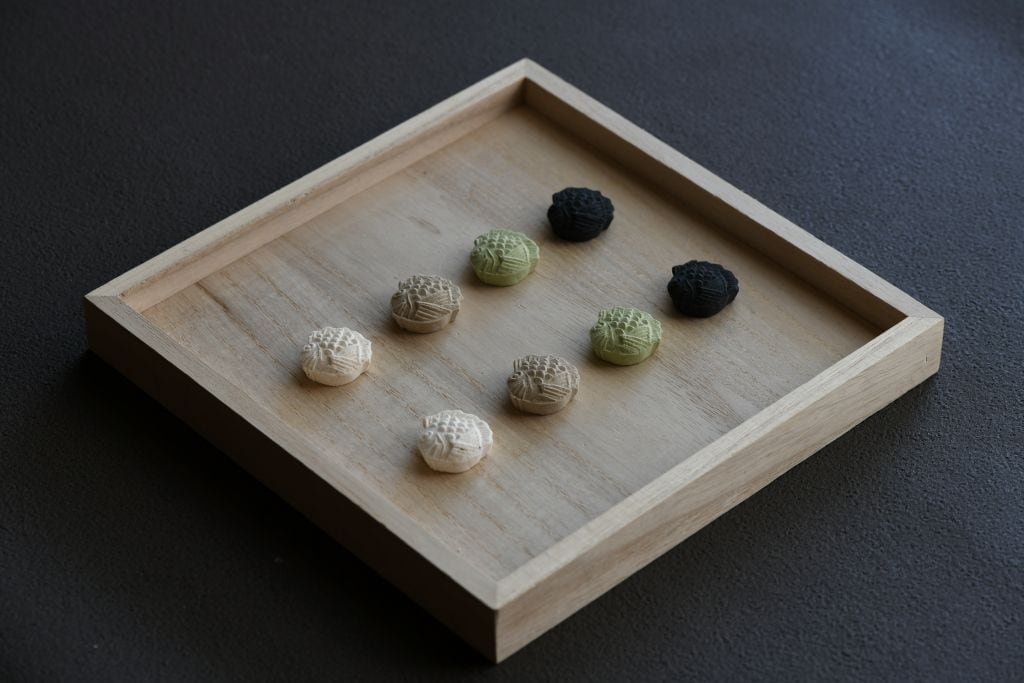 私たちは心に突然訪れる事変のような感情に心を奪われがちです。事変とは予期せぬ大きな出来事を言いますが、そんな心と向き合うきっかけとなるお菓子を作りました。自身の感情に気づき、手放すことで、平穏な日常を過ごしてほしいという願いを込めて腹黒事変と名付けました。日本の小さな芸術を味わいながら、心の変化を感じて頂けたら、これ以上の喜びはありません。兎にも角にもこのお菓子が口福を運んでくれますように。